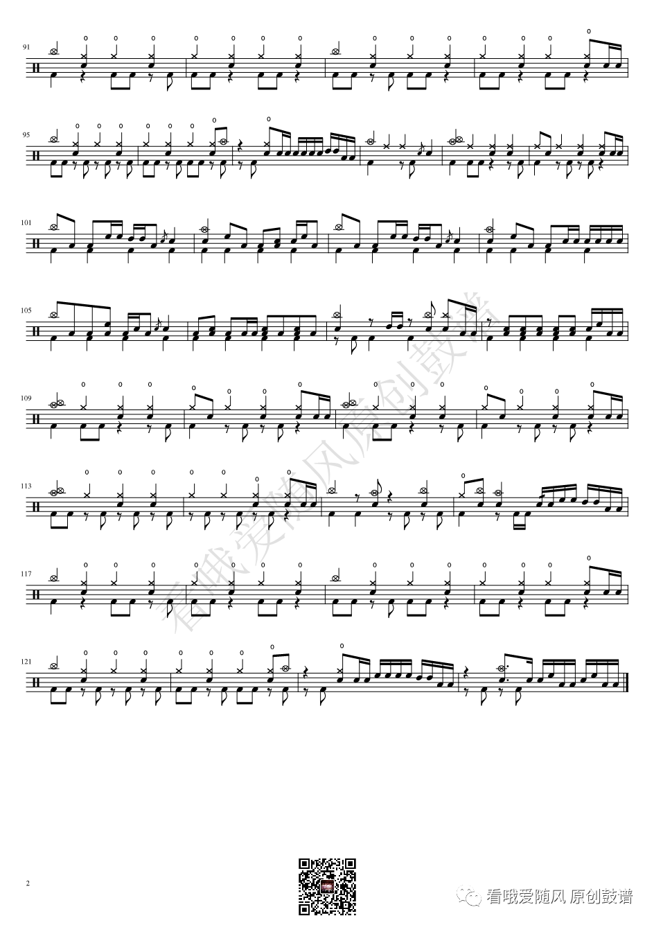 ONEOKROCK《IWasKing》架子鼓谱,看哦爱随风编配出品,共有2张高清图谱,由打鼓谱上传并分享。