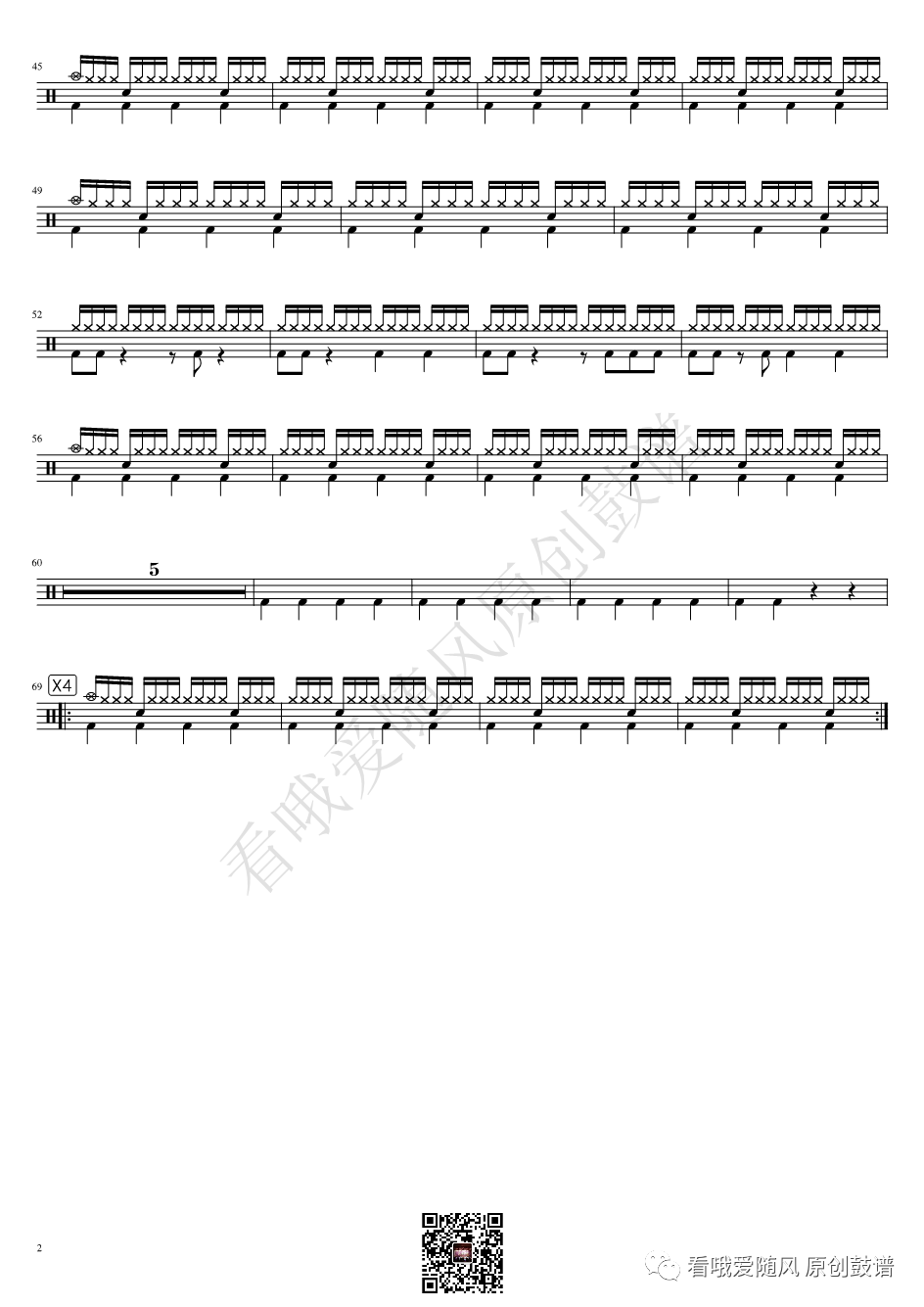 ONEOKROCK《IWasKing》架子鼓谱,看哦爱随风编配出品,共有2张高清图谱,由打鼓谱上传并分享。
