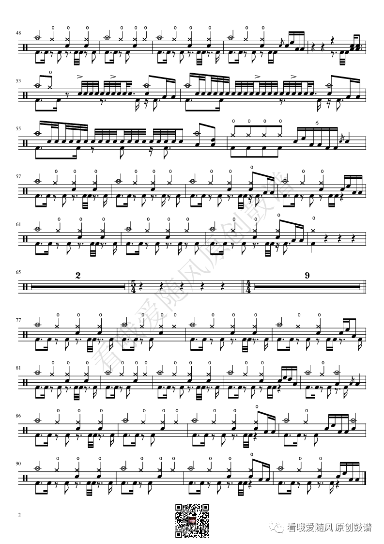 ONEOKROCK《IWasKing》架子鼓谱,看哦爱随风编配出品,共有2张高清图谱,由打鼓谱上传并分享。