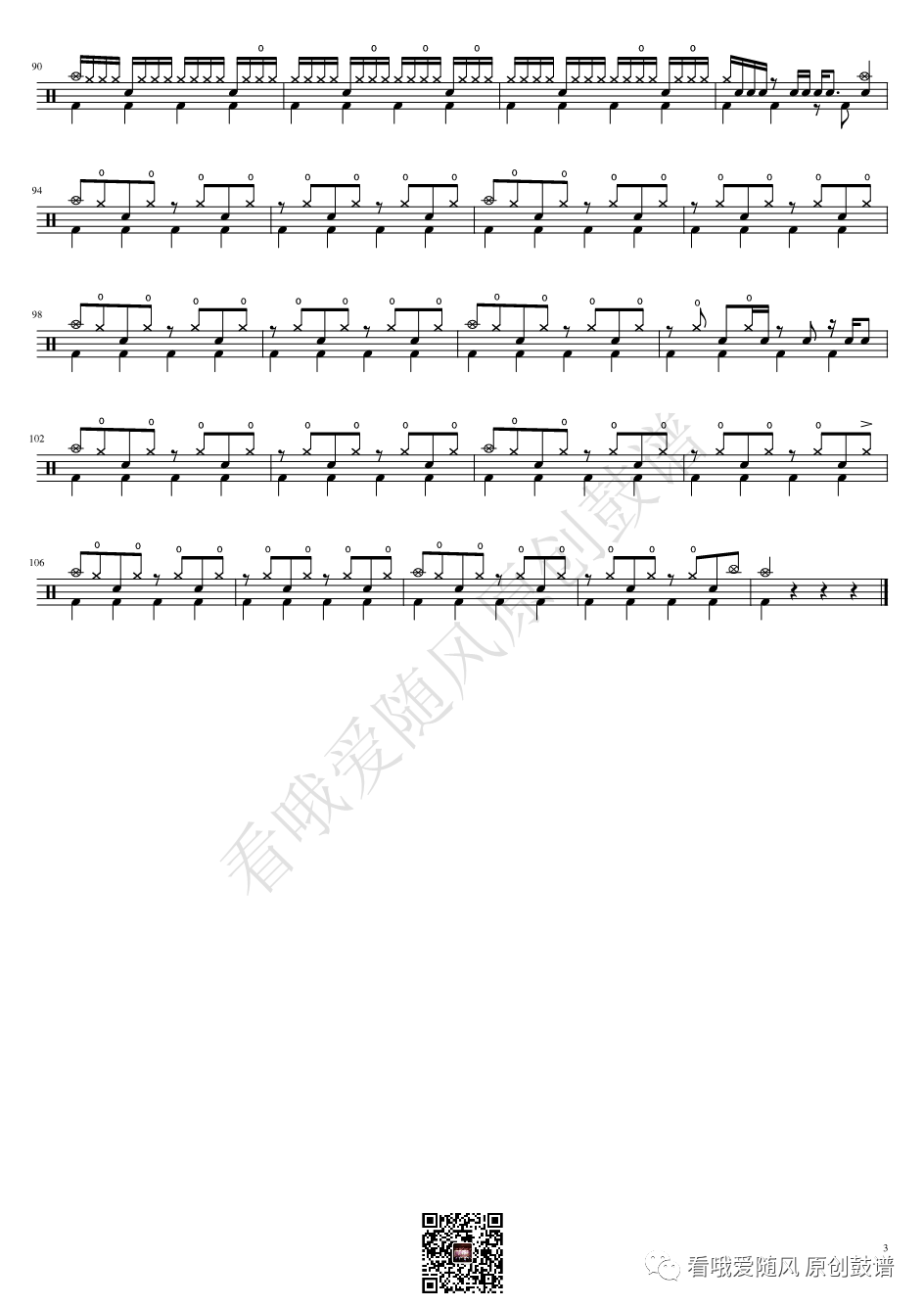 ONEOKROCK《完全感觉Dreamer》架子鼓谱,看哦爱随风编配出品,共有4张高清图谱,由打鼓谱上传并分享。