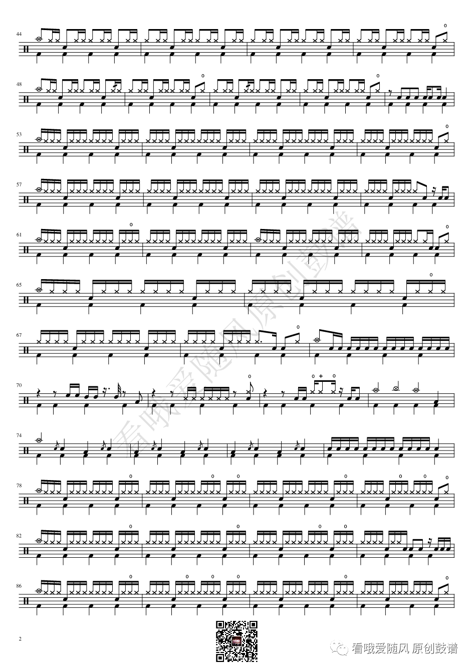 ONEOKROCK《IWasKing》架子鼓谱,看哦爱随风编配出品,共有2张高清图谱,由打鼓谱上传并分享。