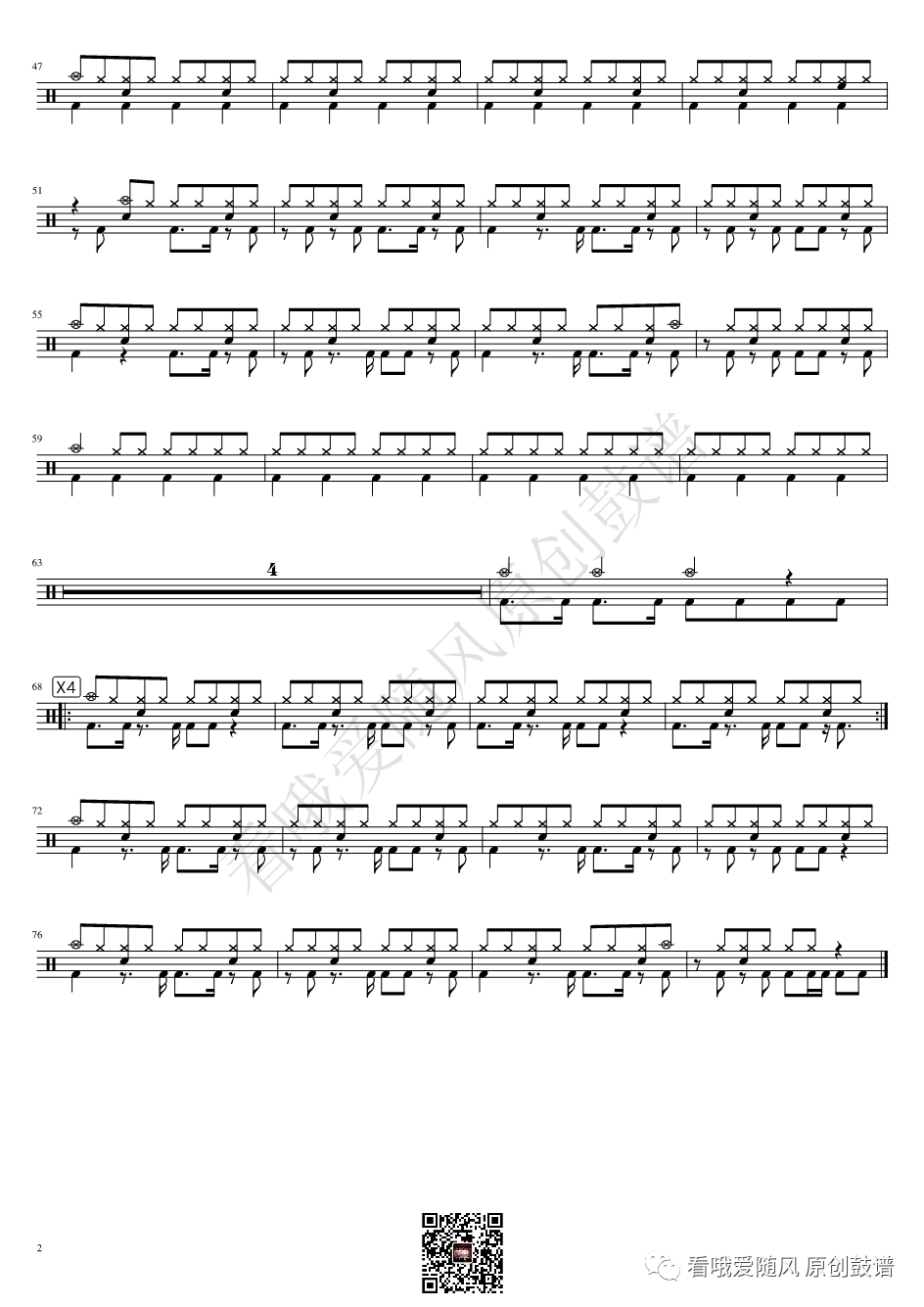 ONEOKROCK《IWasKing》架子鼓谱,看哦爱随风编配出品,共有2张高清图谱,由打鼓谱上传并分享。