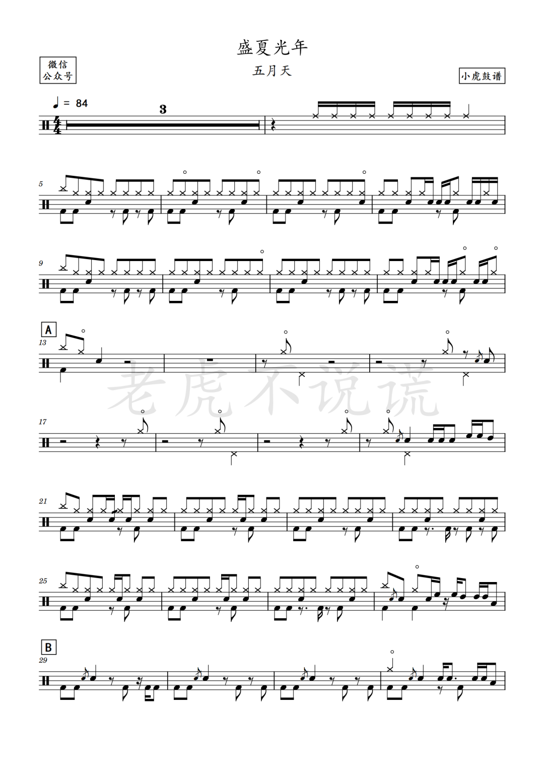 王赫野《热铁皮房顶的夏天》鼓谱 - 架子鼓谱 - (Live)