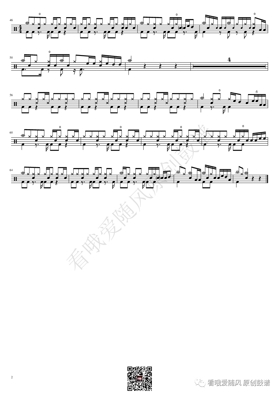 ONEOKROCK《IWasKing》架子鼓谱,看哦爱随风编配出品,共有2张高清图谱,由打鼓谱上传并分享。