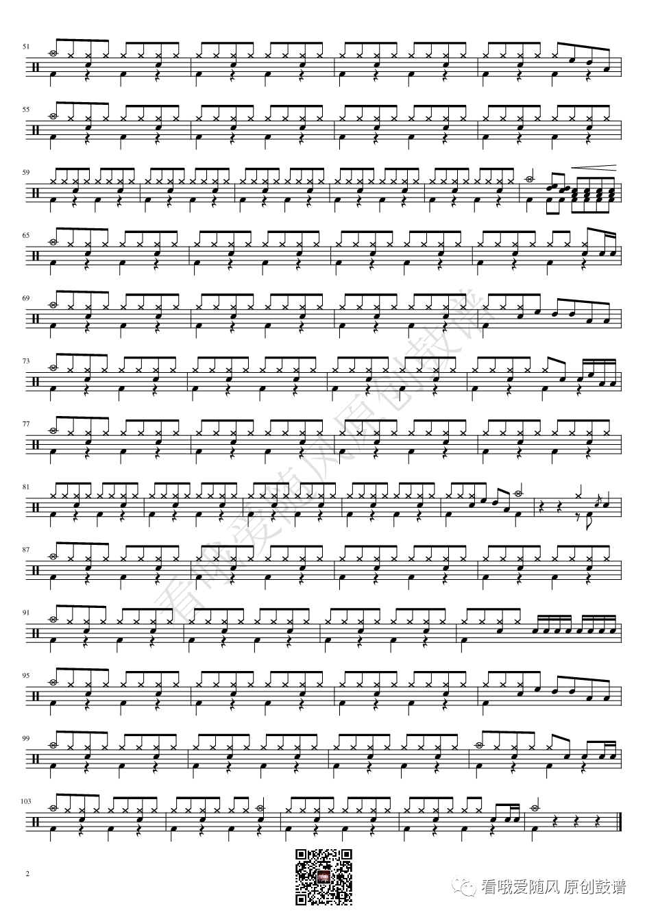 ONEOKROCK《IWasKing》架子鼓谱,看哦爱随风编配出品,共有2张高清图谱,由打鼓谱上传并分享。