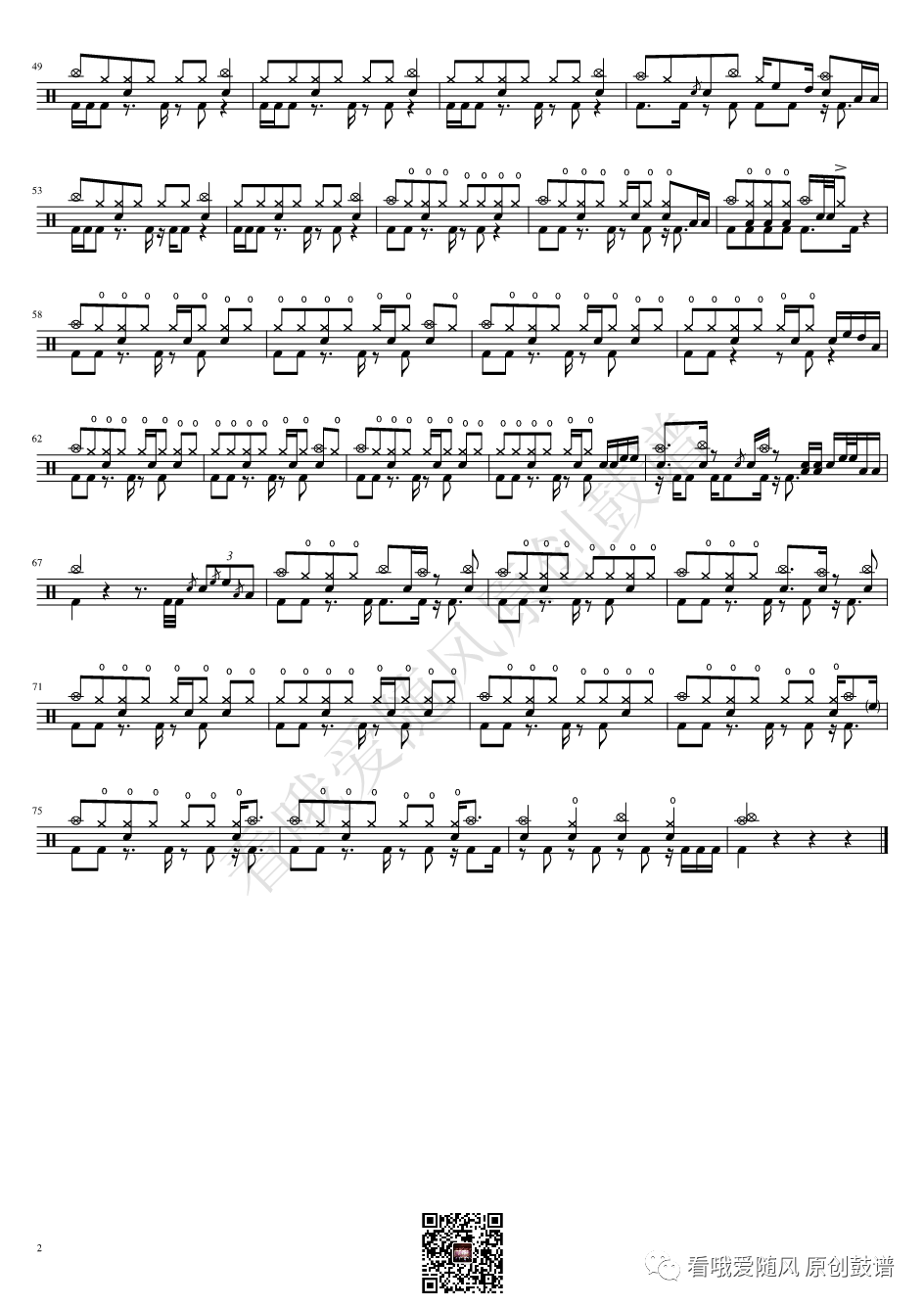 ONEOKROCK《未完成交響曲》架子鼓谱,看哦爱随风编配出品,共有1张高清图谱,由打鼓谱上传并分享。