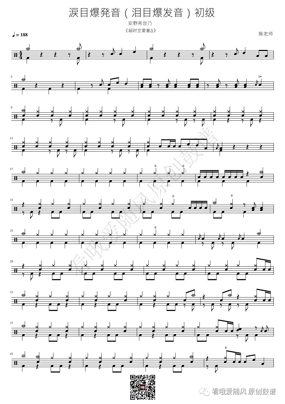 超时空要塞《涙目爆発音》架子鼓谱, 看哦爱随风编配出品,共有1张高清图谱,由打鼓谱上传并分享。NO.782 涙目爆発音(泪目爆发音) 初级 【超时空要塞Δ】鼓谱