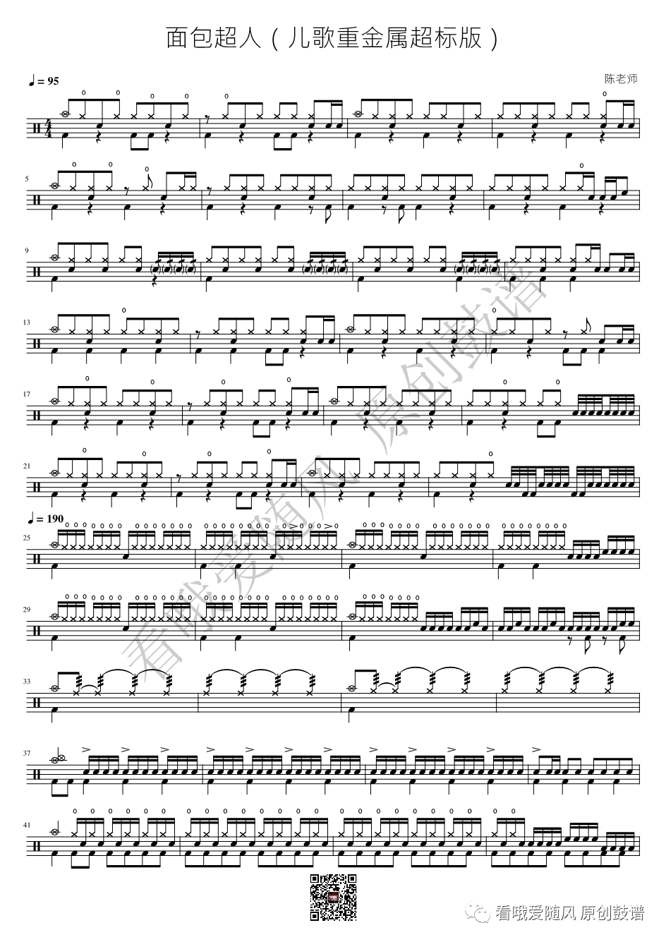 儿歌重金属超标版《面包超人》架子鼓谱, 看哦爱随风编配出品,共有1张高清图谱,由打鼓谱上传并分享。NO.839 面包超人【儿歌重金属超标版】鼓谱
