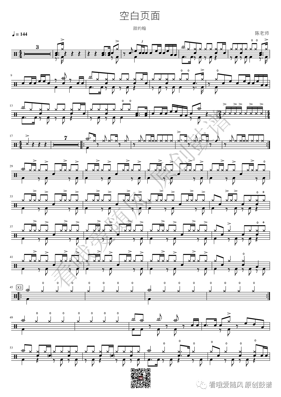 ONEOKROCK《完全感觉Dreamer》架子鼓谱,看哦爱随风编配出品,共有4张高清图谱,由打鼓谱上传并分享。