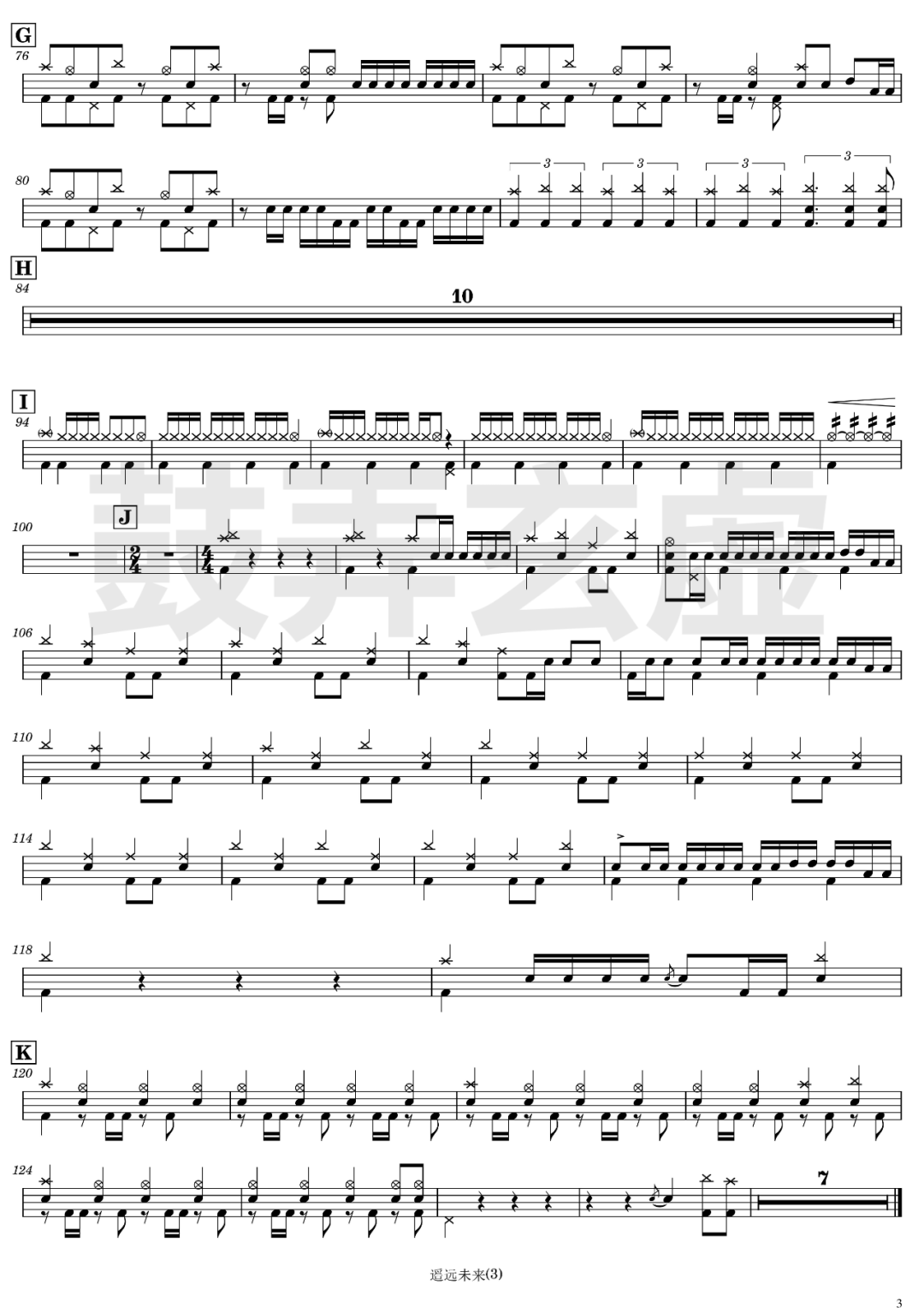 MYFIRSTSTORY《MissingYou》架子鼓谱,看哦爱随风编配出品,共有1张高清图谱,由打鼓谱上传并分享。