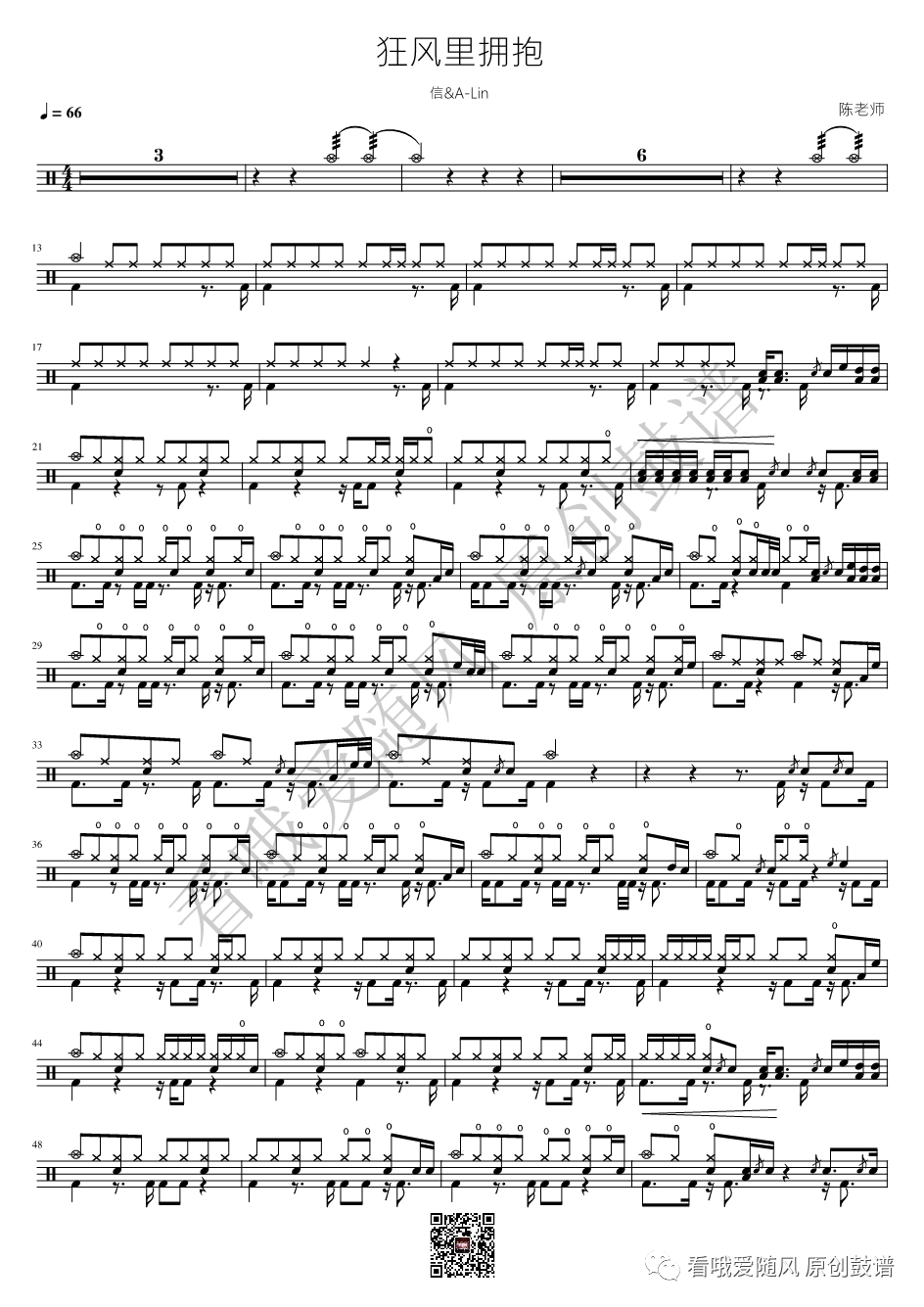 信/A-Lin《狂风里拥抱》架子鼓谱, 看哦爱随风编配出品,共有2张高清图谱,由打鼓谱上传并分享。NO.908 狂风里拥抱【信/A-Lin】鼓谱
