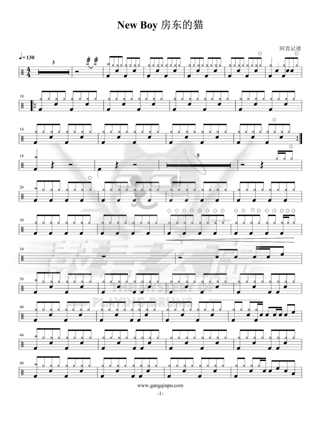 房东的猫《New Boy》架子鼓谱,鼓弄玄虚编配出品,共有3张高清图谱,由打鼓谱上传并分享。鼓谱:《New Boy》-房东的猫