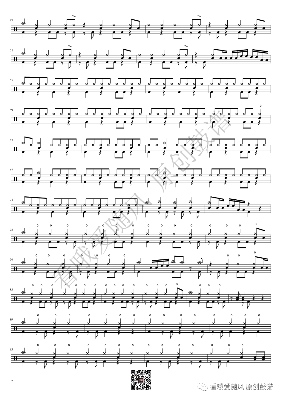 ONEOKROCK《IWasKing》架子鼓谱,看哦爱随风编配出品,共有2张高清图谱,由打鼓谱上传并分享。