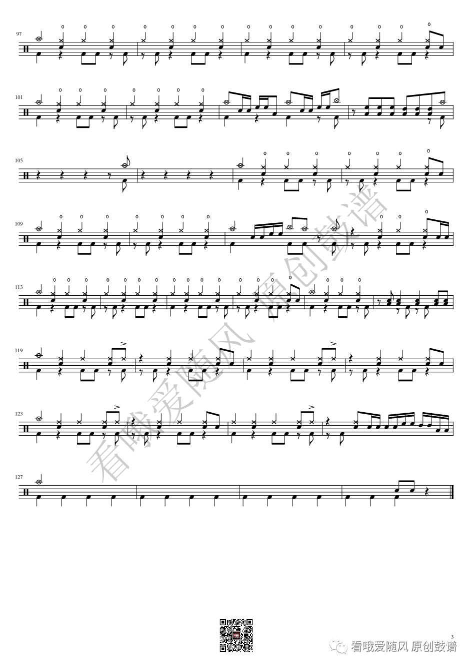 如龙维新OP《ClockStrikes》架子鼓谱,看哦爱随风编配出品,共有1张高清图谱,由打鼓谱上传并分享。