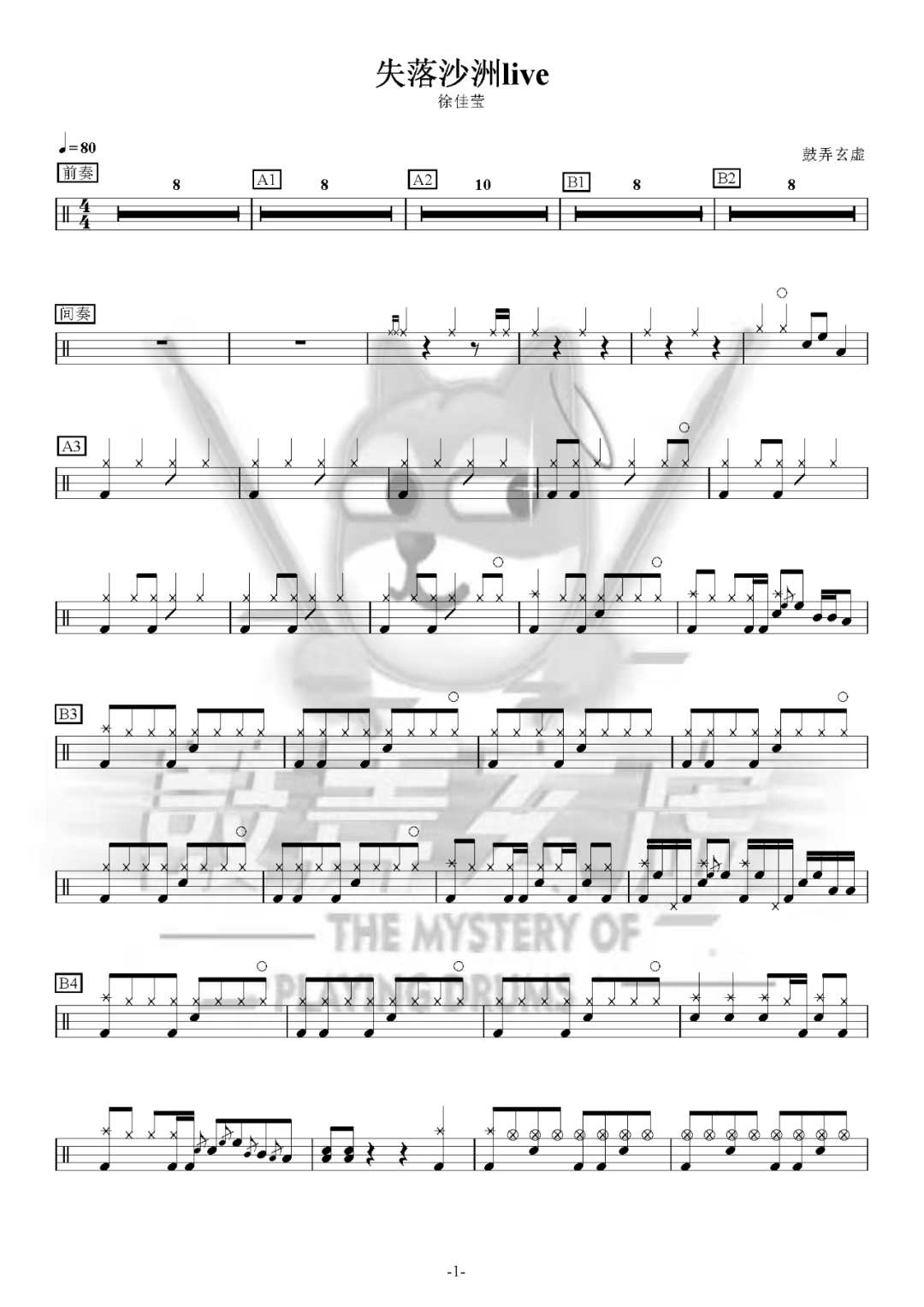 MYFIRSTSTORY《MissingYou》架子鼓谱,看哦爱随风编配出品,共有1张高清图谱,由打鼓谱上传并分享。