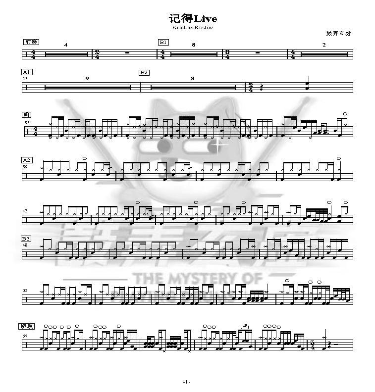 Kristian Kostov《记得》架子鼓谱,鼓弄玄虚编配出品,共有2张高清图谱,由打鼓谱上传并分享。鼓谱:《记得live》-Kristian Kostov