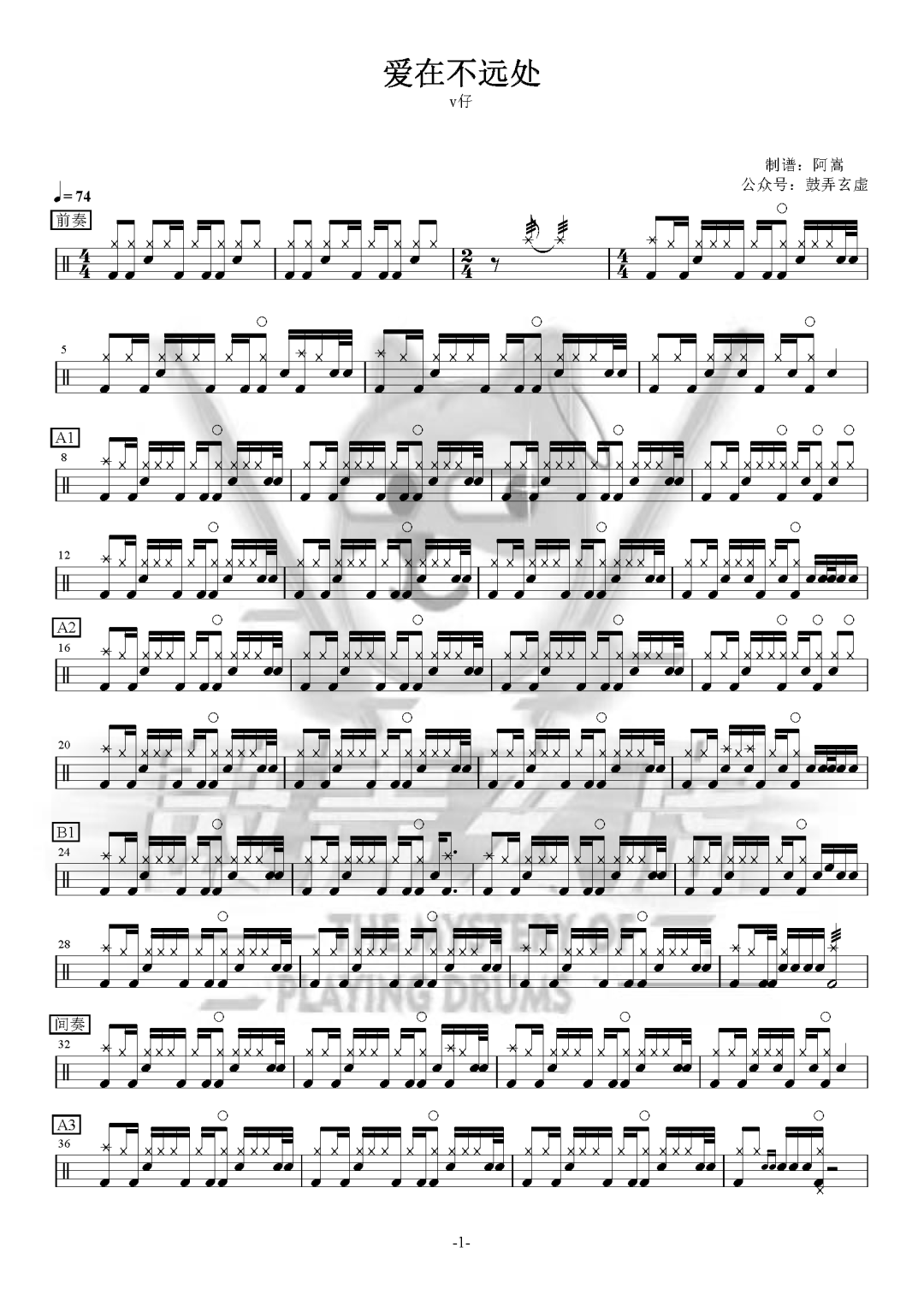 李巍V仔《爱就一个字》鼓谱 - 架子鼓谱