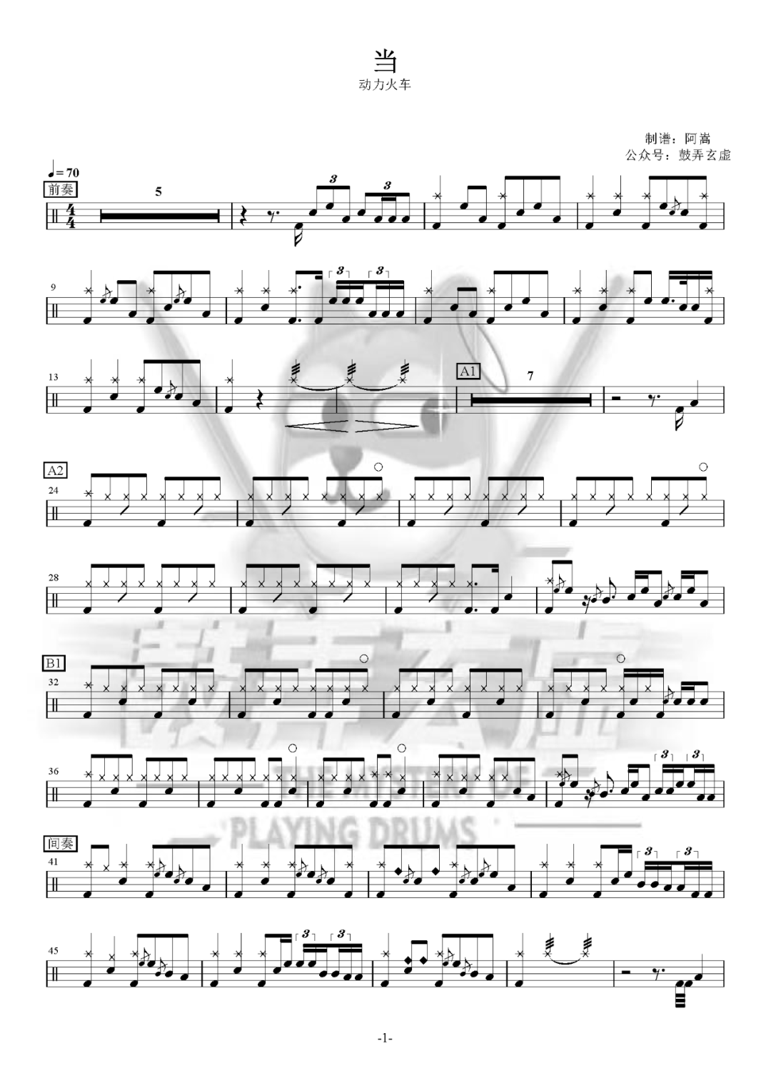 如龙维新OP《ClockStrikes》架子鼓谱,看哦爱随风编配出品,共有1张高清图谱,由打鼓谱上传并分享。