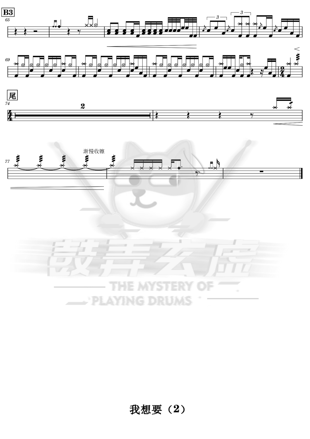 杨宗纬《我想要》架子鼓谱为歌而赞Live,鼓弄玄虚编配出品,共有2张高清图谱,由打鼓谱上传并分享。鼓谱:《我想要》-杨宗纬(为歌而赞Live)