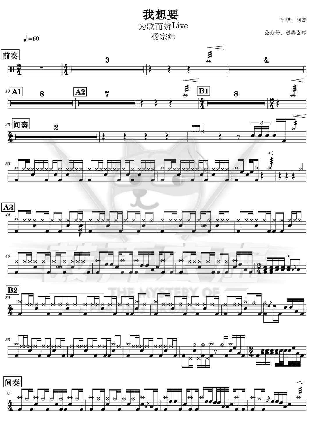 杨宗纬《我想要》鼓谱 - 架子鼓谱 - 为歌而赞Live