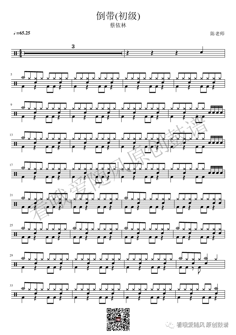 蔡依林《倒带》架子鼓谱初级版, 看哦爱随风编配出品,共有2张高清图谱,由打鼓谱上传并分享。NO.52 倒带(初级)蔡依林