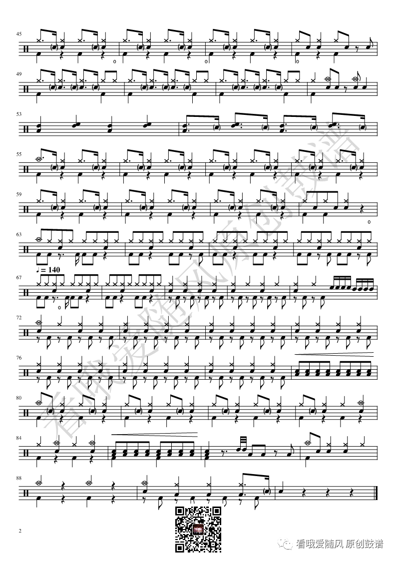 ONEOKROCK《IWasKing》架子鼓谱,看哦爱随风编配出品,共有2张高清图谱,由打鼓谱上传并分享。