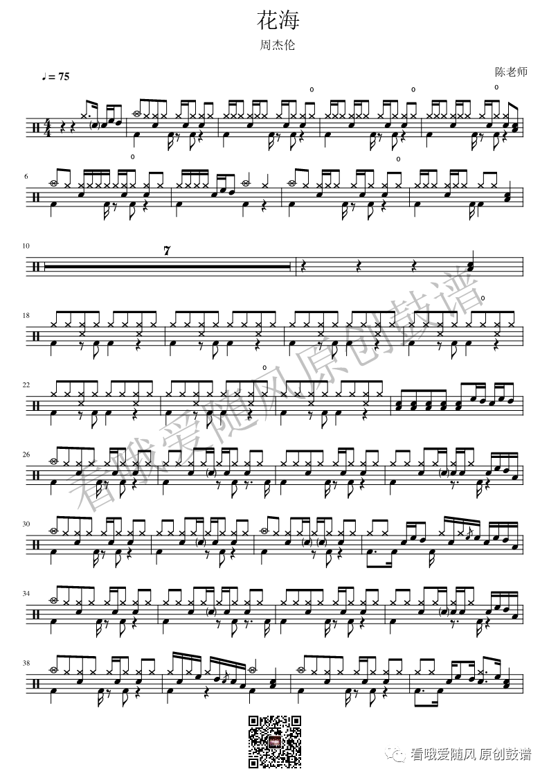 如龙维新OP《ClockStrikes》架子鼓谱,看哦爱随风编配出品,共有1张高清图谱,由打鼓谱上传并分享。