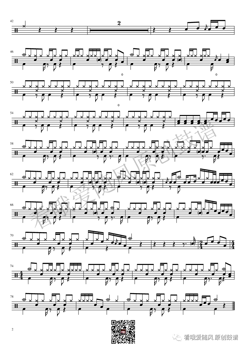 ONEOKROCK《IWasKing》架子鼓谱,看哦爱随风编配出品,共有2张高清图谱,由打鼓谱上传并分享。