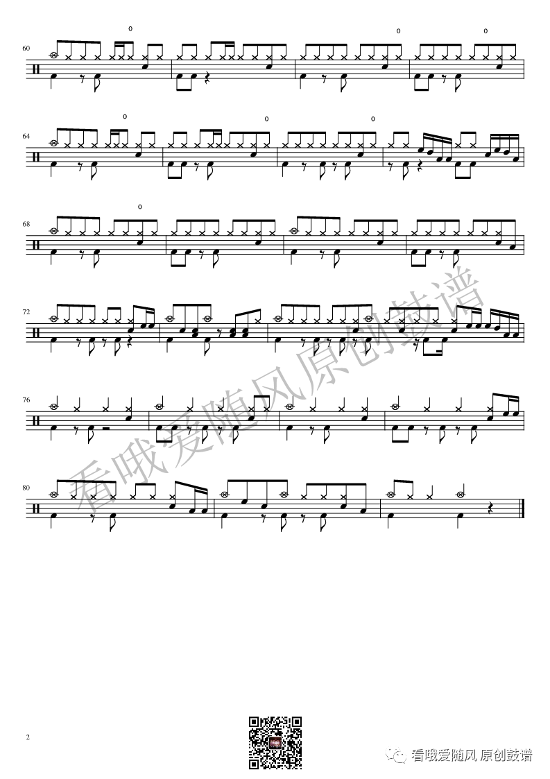 ONEOKROCK《IWasKing》架子鼓谱,看哦爱随风编配出品,共有2张高清图谱,由打鼓谱上传并分享。
