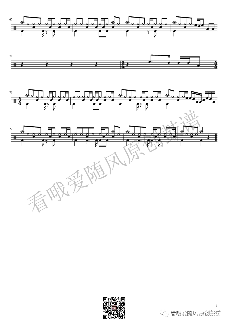 ONEOKROCK《Re:make》架子鼓谱,看哦爱随风编配出品,共有3张高清图谱,由打鼓谱上传并分享。