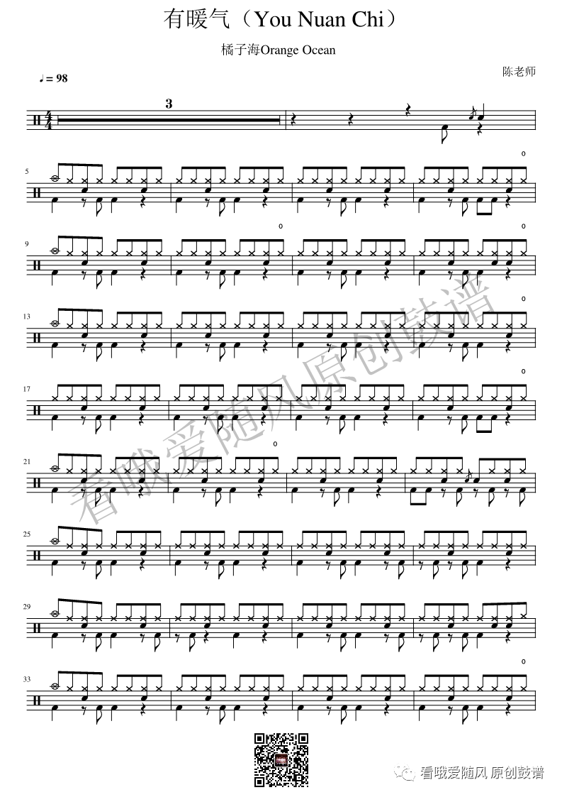橘子海《有暖气》架子鼓谱, 看哦爱随风编配出品,共有3张高清图谱,由打鼓谱上传并分享。NO.141 有暖气(You Nuan Chi)橘子海 鼓谱