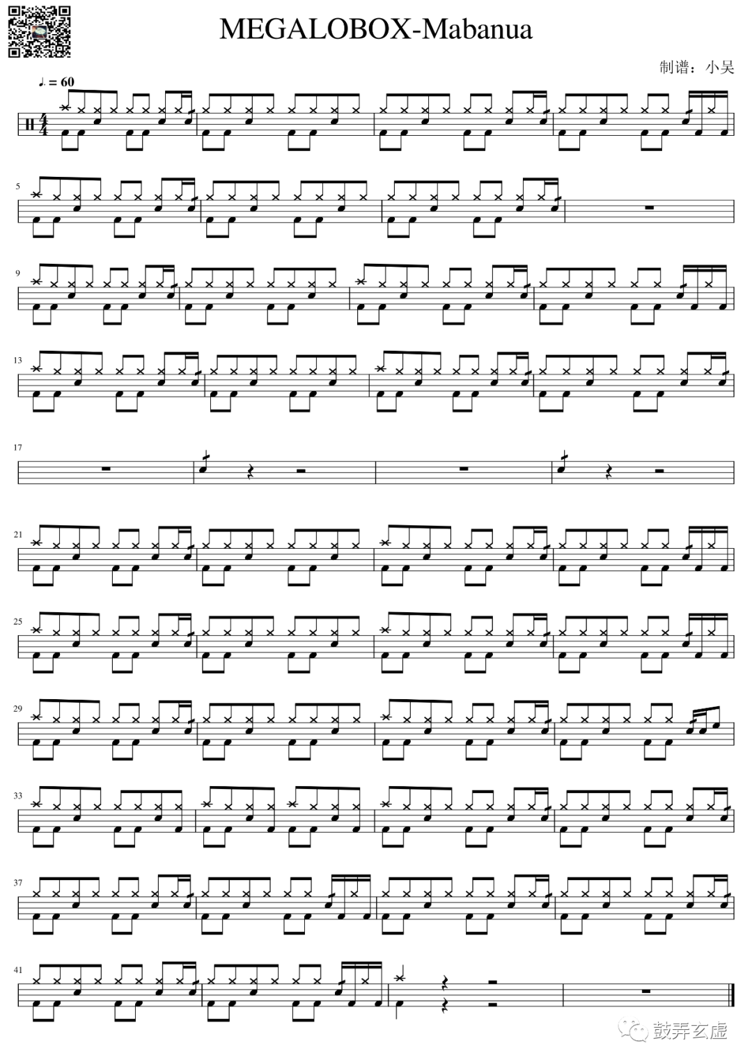 Mabanua《MEGALOBOX》架子鼓谱,鼓弄玄虚编配出品,共有1张高清图谱,由打鼓谱上传并分享。鼓谱:MEGALOBOX-Mabanua