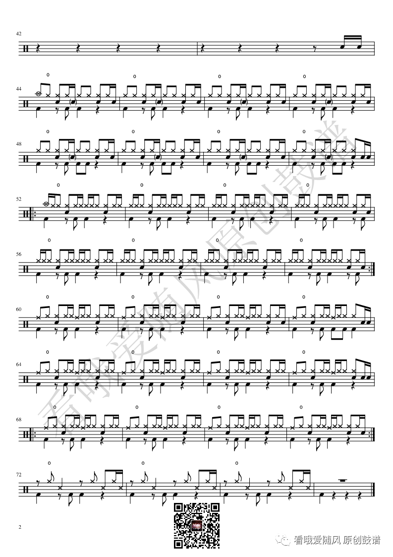 ONEOKROCK《未完成交響曲》架子鼓谱,看哦爱随风编配出品,共有1张高清图谱,由打鼓谱上传并分享。