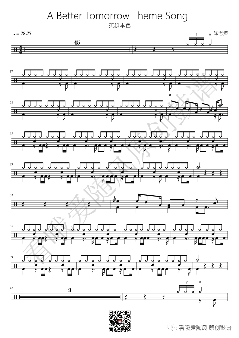 如龙维新OP《ClockStrikes》架子鼓谱,看哦爱随风编配出品,共有1张高清图谱,由打鼓谱上传并分享。