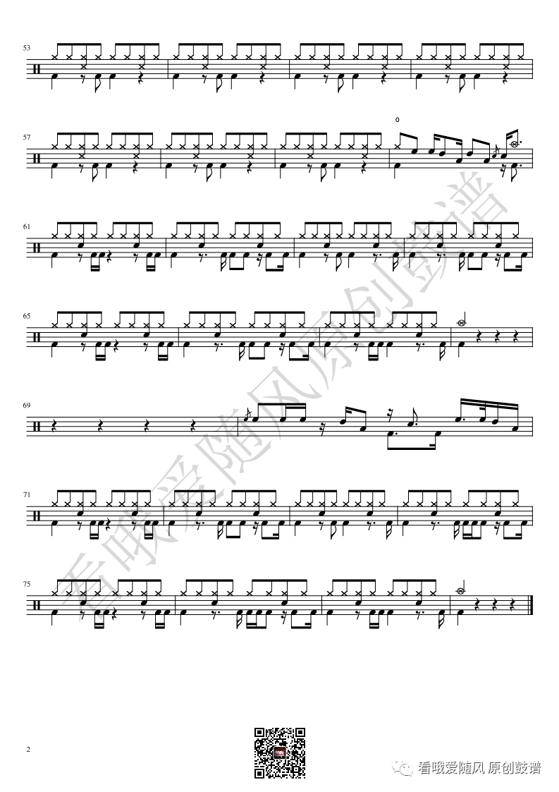 ONEOKROCK《IWasKing》架子鼓谱,看哦爱随风编配出品,共有2张高清图谱,由打鼓谱上传并分享。