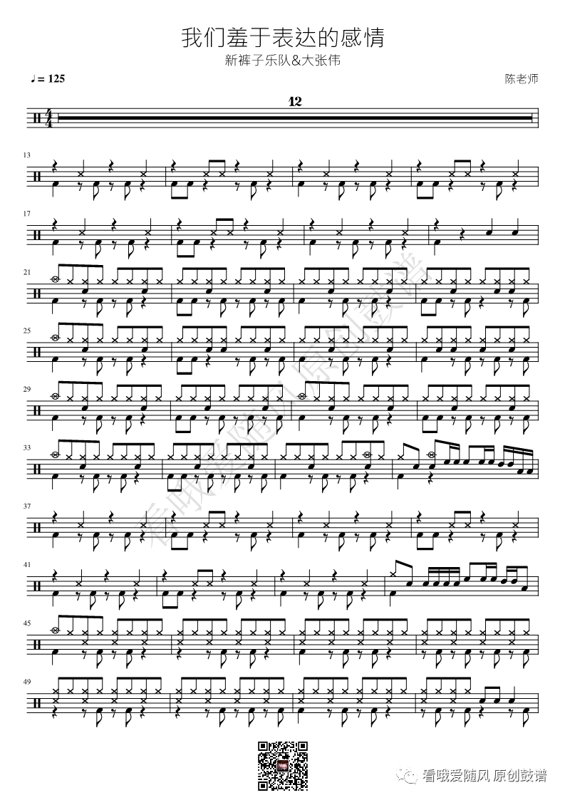 新裤子《我们羞于表达的感情》架子鼓谱, 看哦爱随风编配出品,共有2张高清图谱,由打鼓谱上传并分享。NO.357 我们羞于表达的感情 新裤子 鼓谱