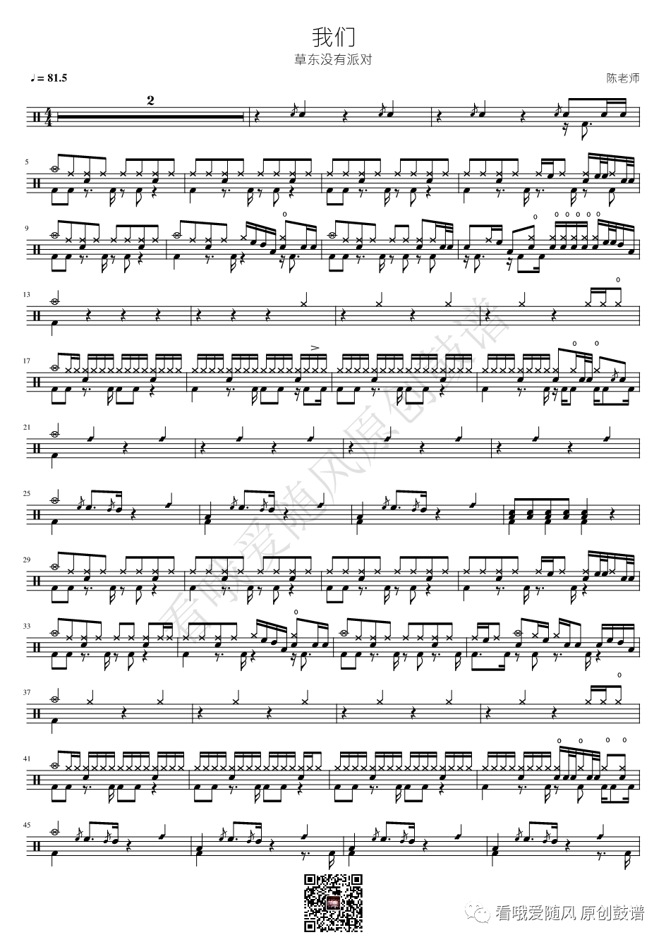 草东没有派对《我们》架子鼓谱, 看哦爱随风编配出品,共有2张高清图谱,由打鼓谱上传并分享。NO.375 我们 草东没有派对 鼓谱