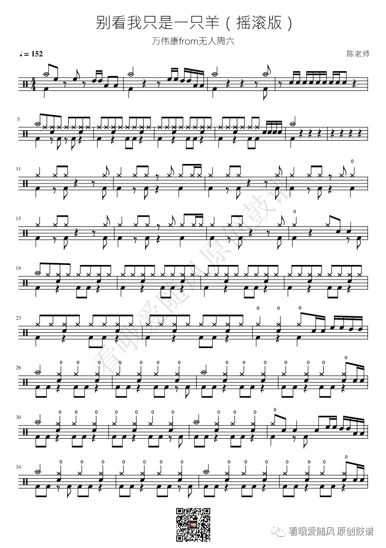 《别看我只是一只羊》鼓谱 - 架子鼓谱 - 摇滚版