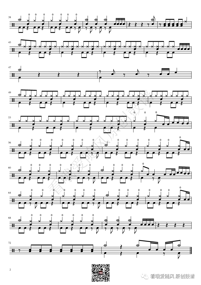 ONEOKROCK《IWasKing》架子鼓谱,看哦爱随风编配出品,共有2张高清图谱,由打鼓谱上传并分享。
