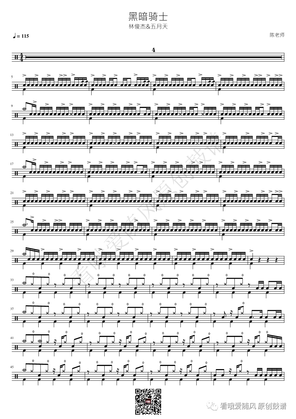 林俊杰/五月天《黑暗骑士》架子鼓谱, 看哦爱随风编配出品,共有1张高清图谱,由打鼓谱上传并分享。NO.428 黑暗骑士 林俊杰 五月天 鼓谱