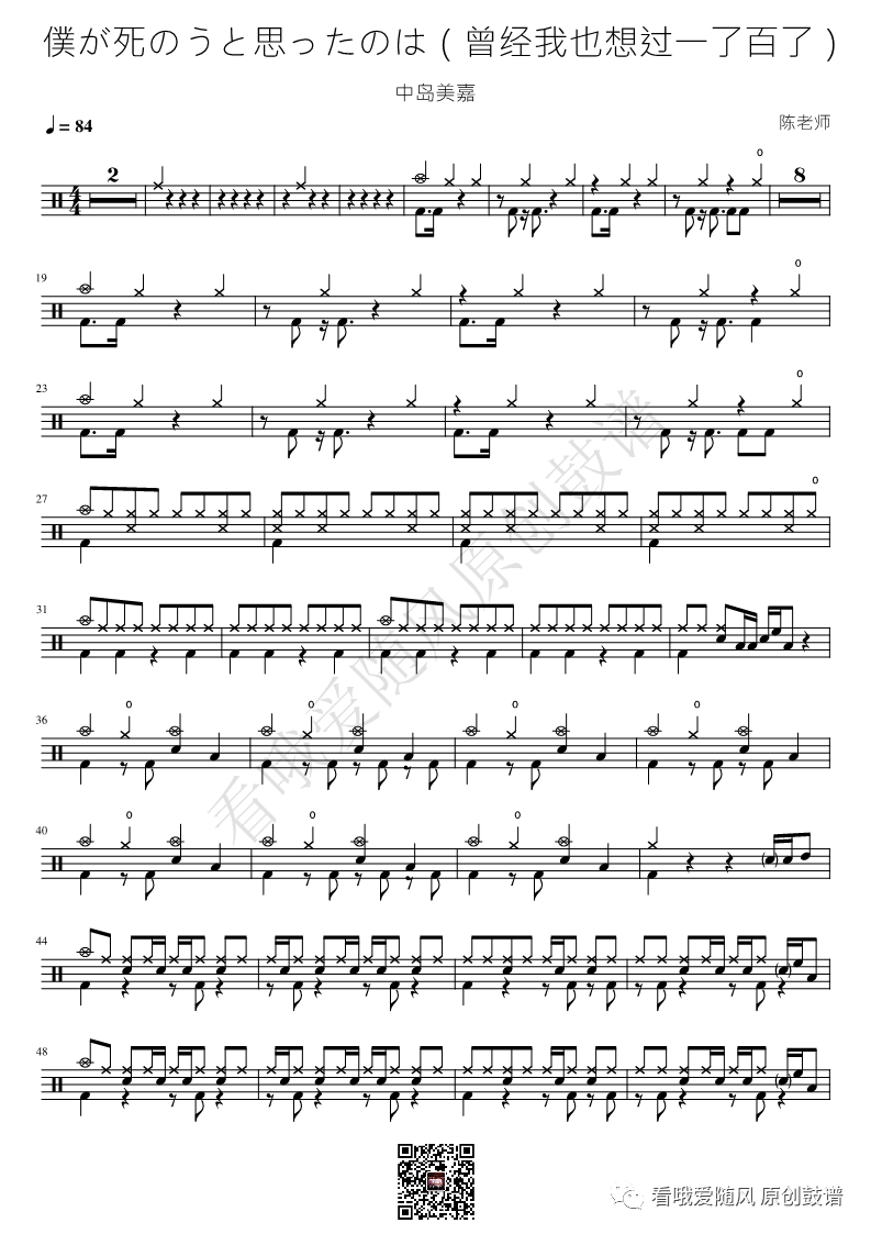 中岛美嘉《曾经我也想过一了百了》架子鼓谱, 看哦爱随风编配出品,共有3张高清图谱,由打鼓谱上传并分享。NO.461 曾经我也想过一了百了 中岛美嘉 鼓谱
