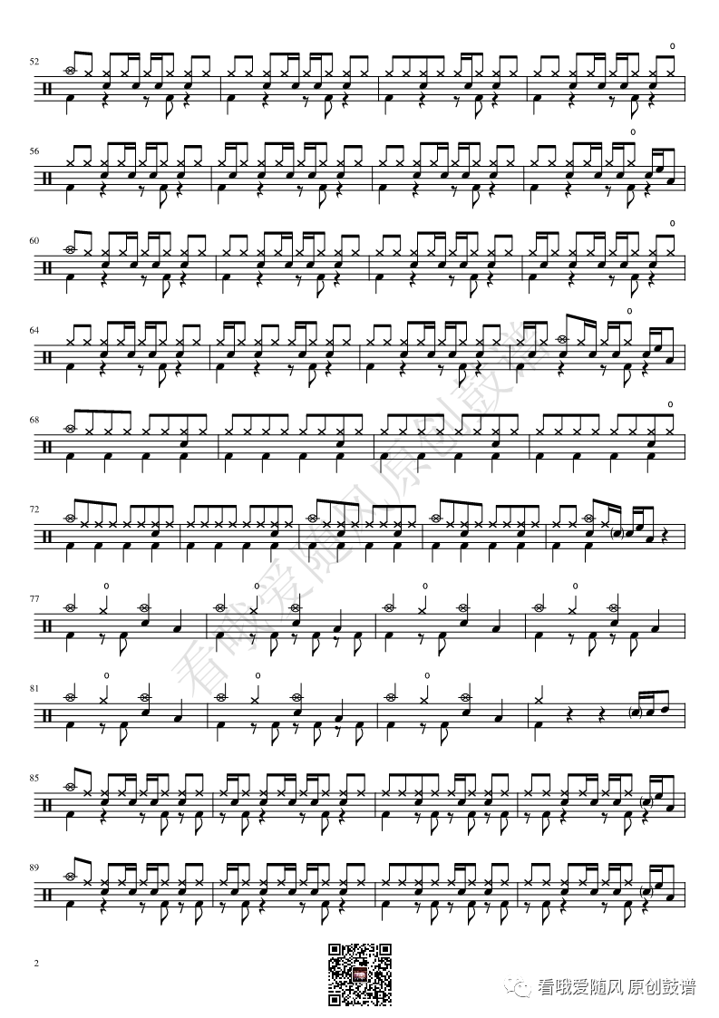 ONEOKROCK《IWasKing》架子鼓谱,看哦爱随风编配出品,共有2张高清图谱,由打鼓谱上传并分享。