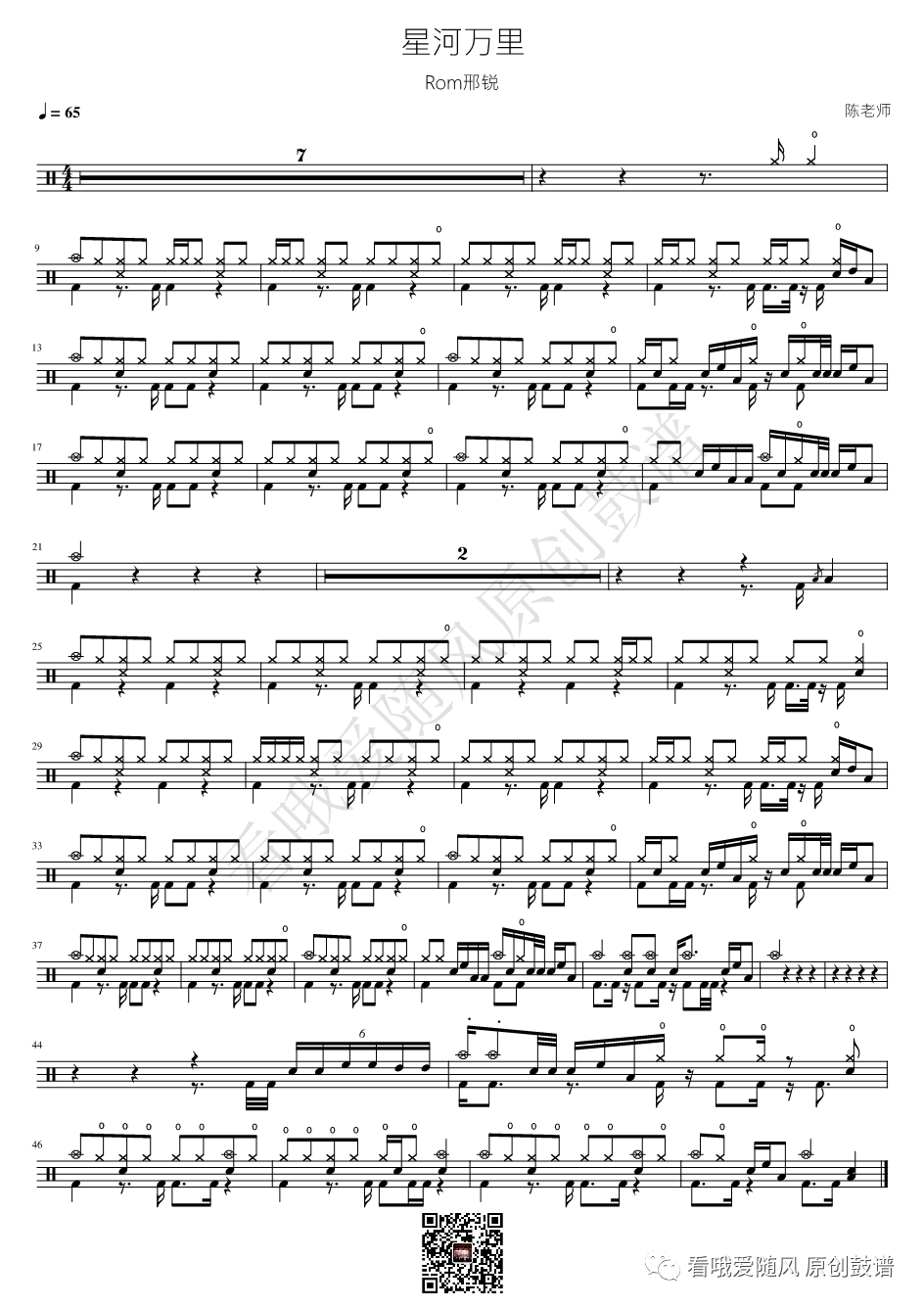 Rom邢锐《星河万里》架子鼓谱, 看哦爱随风编配出品,共有1张高清图谱,由打鼓谱上传并分享。NO.487 星河万里 Rom邢锐 鼓谱