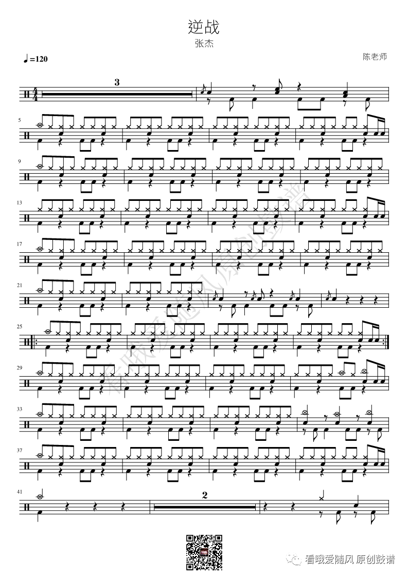如龙维新OP《ClockStrikes》架子鼓谱,看哦爱随风编配出品,共有1张高清图谱,由打鼓谱上传并分享。