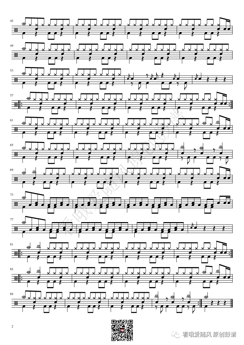 ONEOKROCK《IWasKing》架子鼓谱,看哦爱随风编配出品,共有2张高清图谱,由打鼓谱上传并分享。