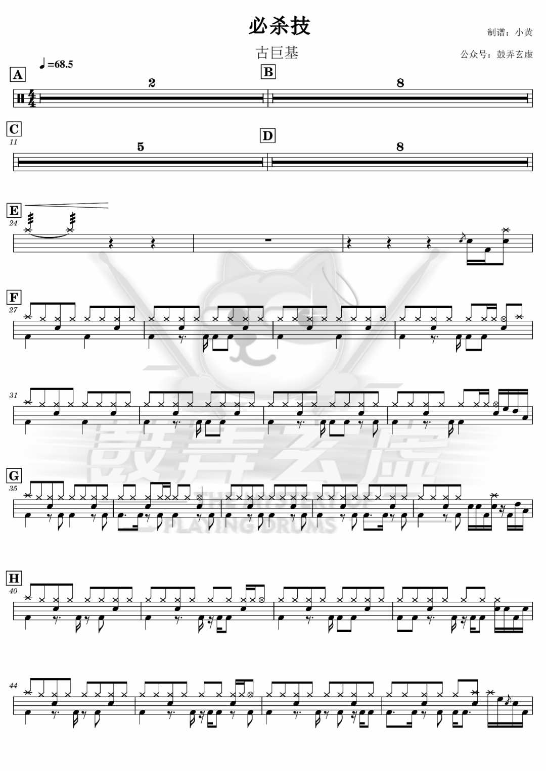 张叔公emo了《必杀技》鼓谱 - 架子鼓谱