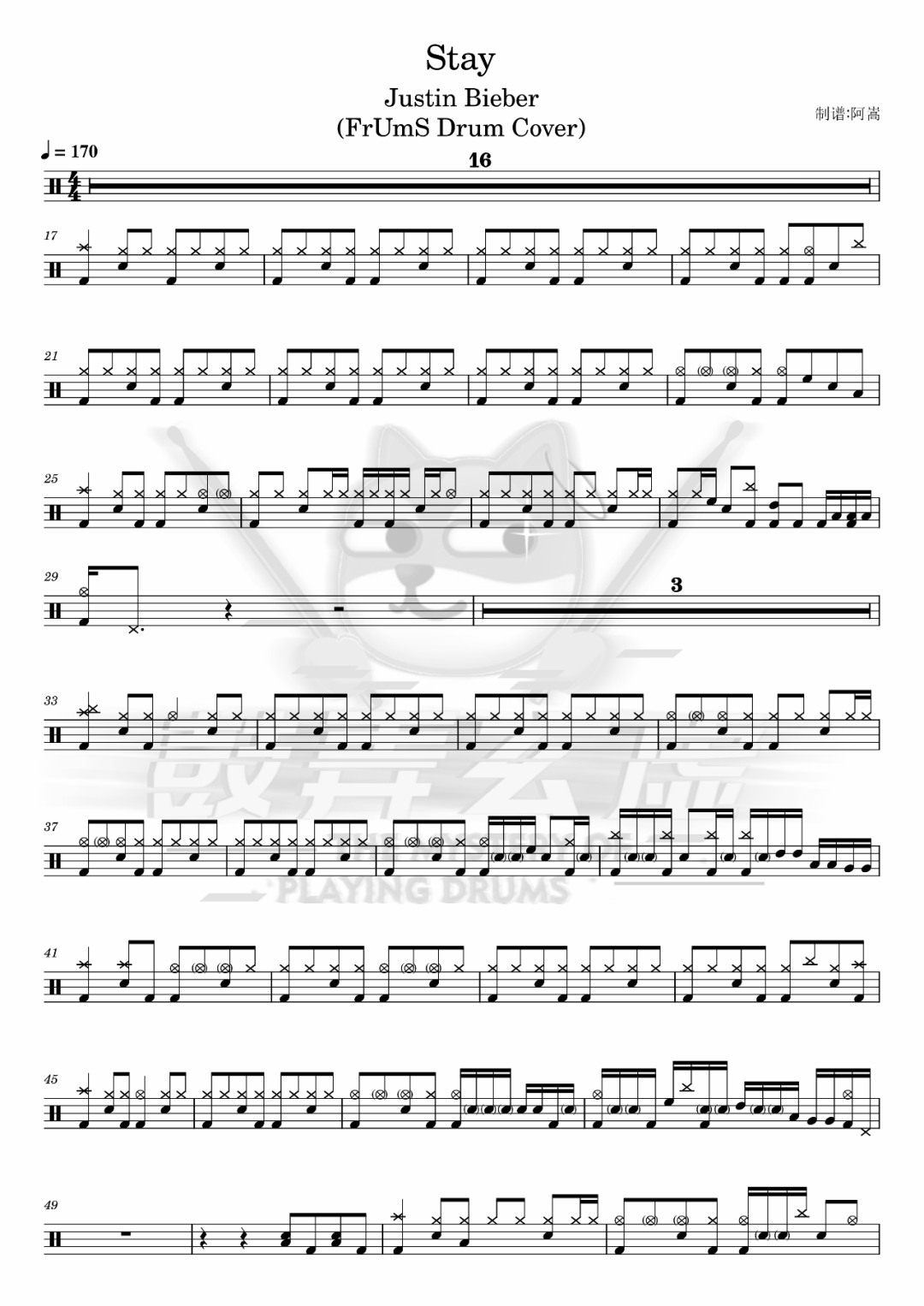 Justin Bieber《Stay》鼓谱 - 架子鼓谱