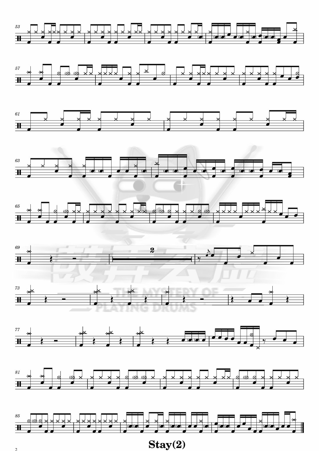 Justin Bieber《Stay》架子鼓谱,鼓弄玄虚编配出品,共有2张高清图谱,由打鼓谱上传并分享。鼓谱:《 Stay》 -The Kid LAROI, Justin Bieber (FrUmS Drum Cover)