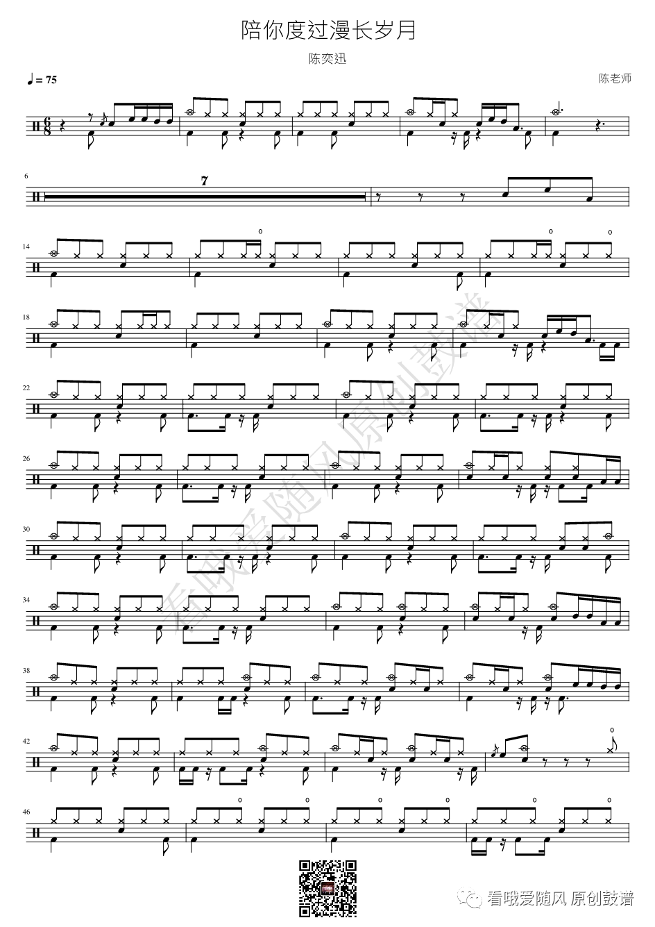 陈奕迅《陪你度过漫长岁月》架子鼓谱, 看哦爱随风编配出品,共有1张高清图谱,由打鼓谱上传并分享。NO.501 陪你度过漫长岁月 陈奕迅 鼓谱