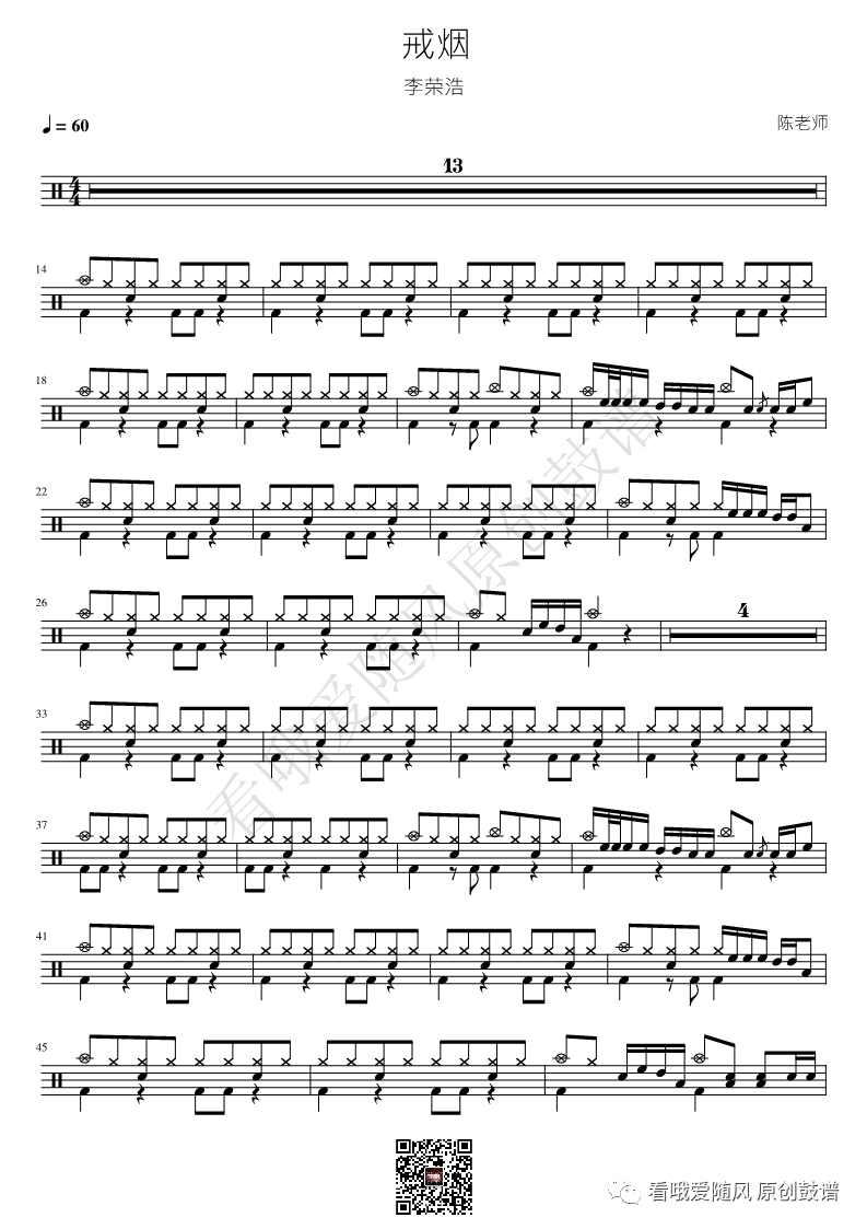 ONEOKROCK《未完成交響曲》架子鼓谱,看哦爱随风编配出品,共有1张高清图谱,由打鼓谱上传并分享。